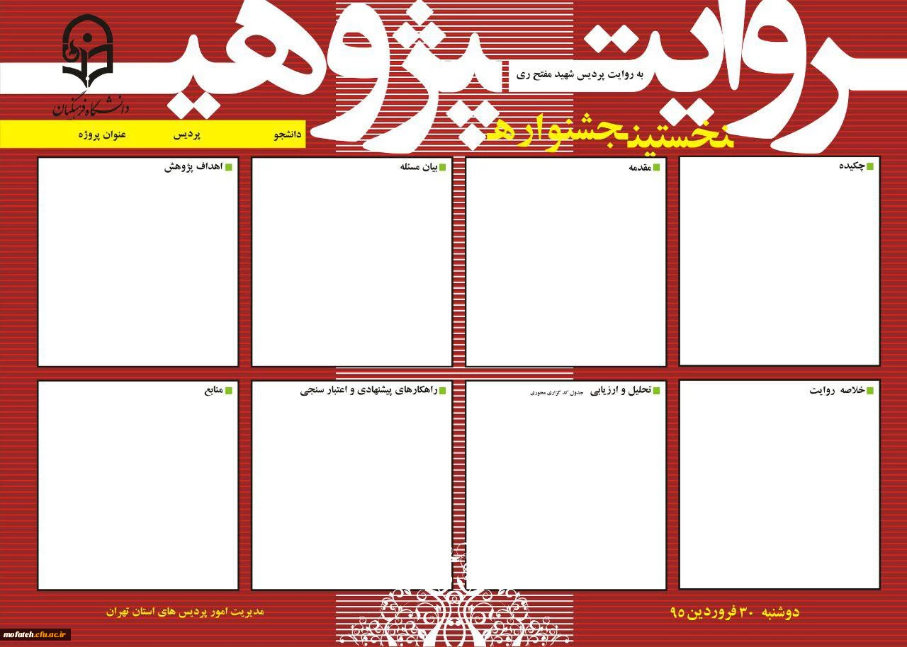امتیاز دهید : قابل توجه دانشجومعلمان علاقمند به شرکت در نخستین جشنواره استانی روایت پژوهی 2 دوشنبه 23 فروردین 1395 ساعت 22:43