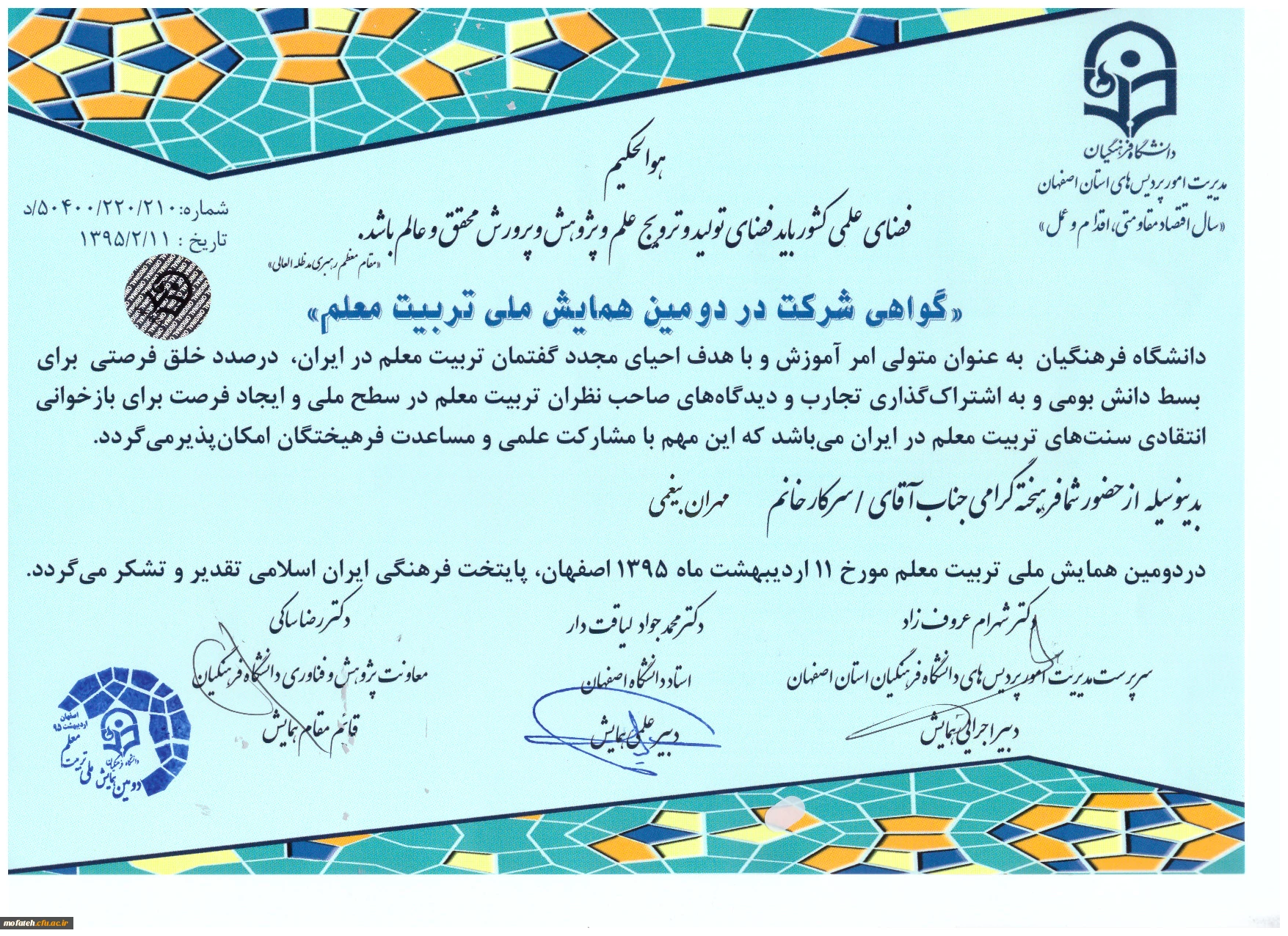 امتیاز دهید : مقالات منتخب استادان پردیس شهید مفتح در دومین همایش ملی تربیت معلم 3 شنبه 18 اردیبهشت 1395 ساعت 10:52