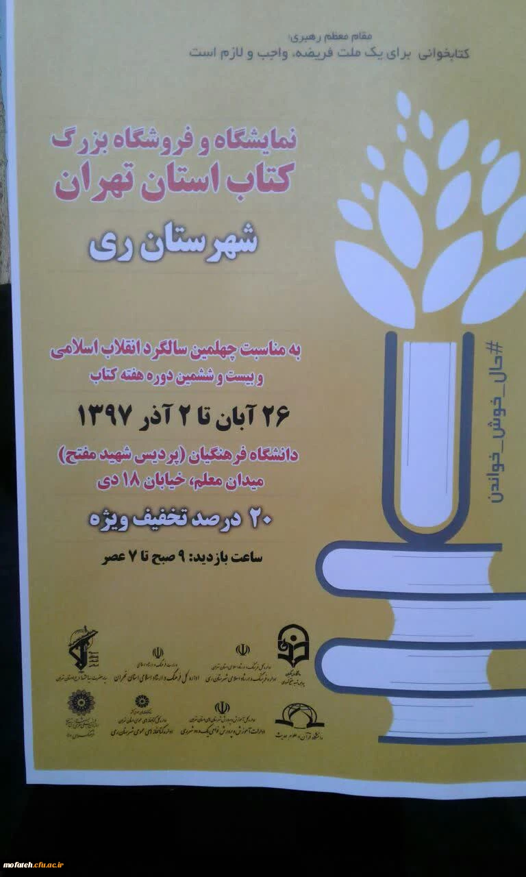 امتیاز دهید : برگزاری نمایشگاه و فروشگاه کتاب استان تهران در دانشگاه فرهنگیان پردیس شهید مفتح شهرری 2 شنبه 26 آبان 1397 ساعت 16:51