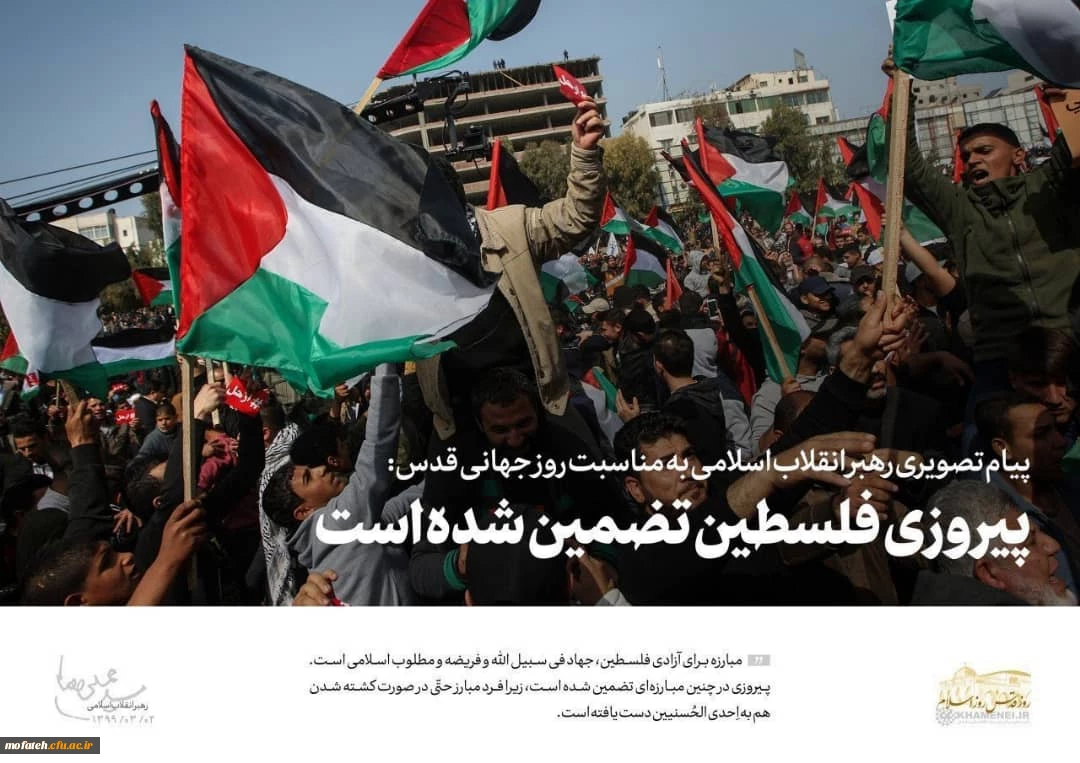 امتیاز دهید : پیام رهبر معظم انقلاب به مناسبت روز جهانی قدس: پیروزی فلسطین تضمین شده است 2 شنبه 3 خرداد 1399 ساعت 8:37