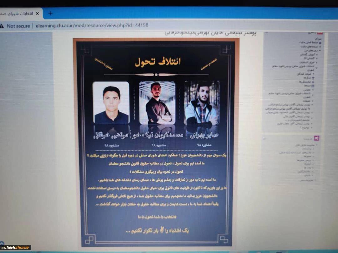 گزارش هشتمین دوره انتخابات شورای صنفی پردیس شهید مفتح 5