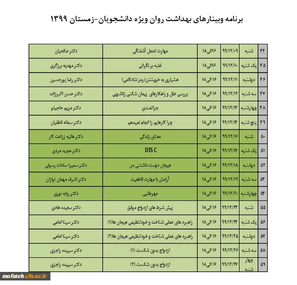 دوره های آنلاین بهداشت روان ویژه دانشجویان و دانشجومعلمان، با حضور متخصصان روان شناسی و مشاوره کشور 2