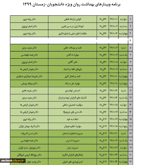 دوره های آنلاین بهداشت روان ویژه دانشجویان و دانشجومعلمان، با حضور متخصصان روان شناسی و مشاوره کشور 2