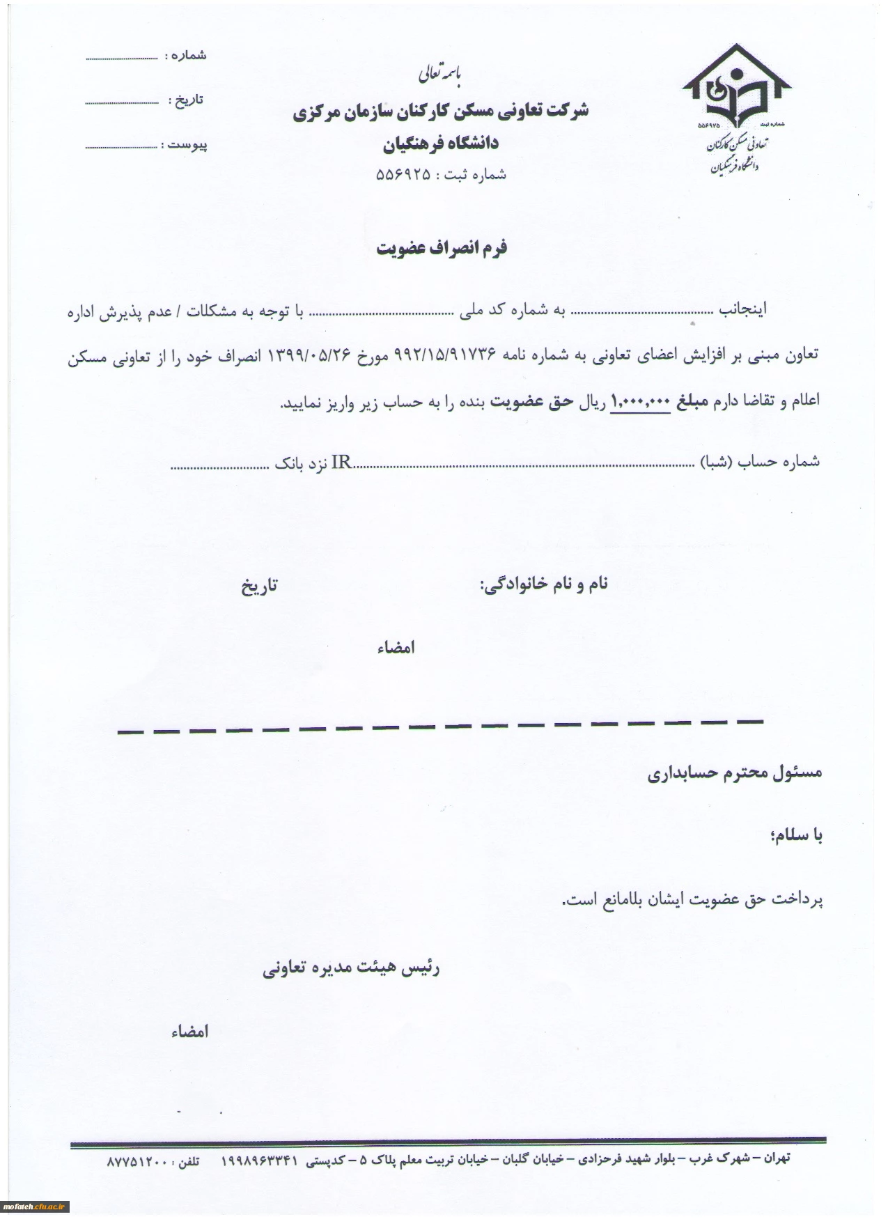 اطلاعیه پیرامون تعاونی مسکن (قابل توجه همکاران)  2
