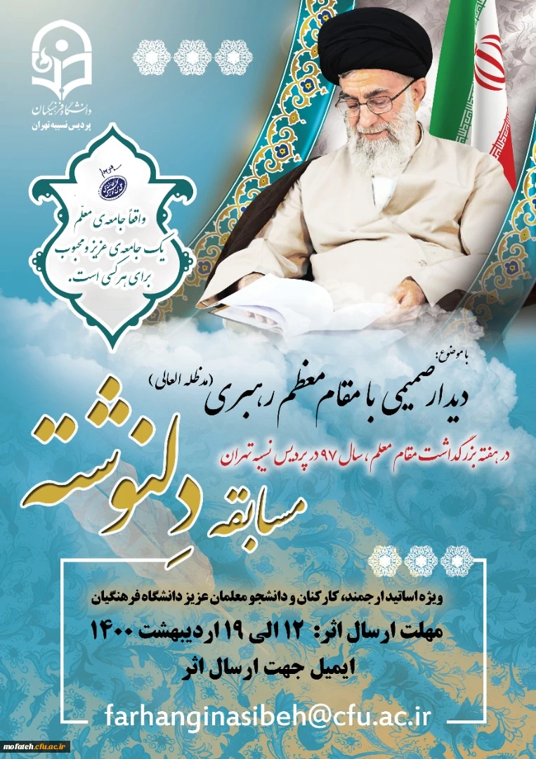 مسابقه ی دل نوشته با موضوع دیدار صمیمی با رهبر معظم انقلاب (مدظله العالی) ویژه استادان، کارکنان و دانشجومعلمان دانشگاه فرهنگیان 2