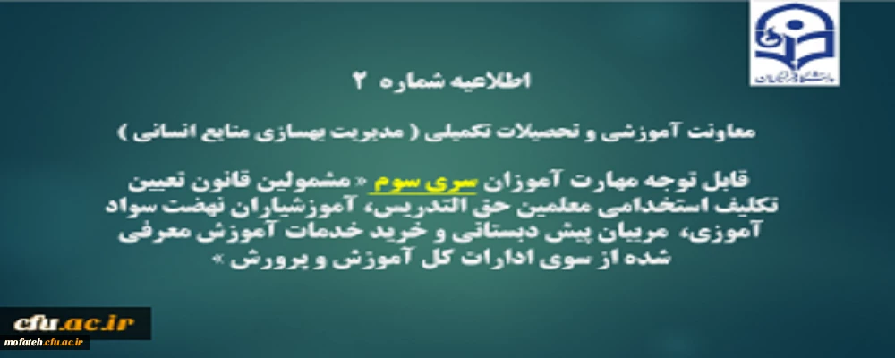 اطلاعیه شماره2 معاونت آموزشی و تحصیلات تکمیلی ( مدیریت بهسازی )