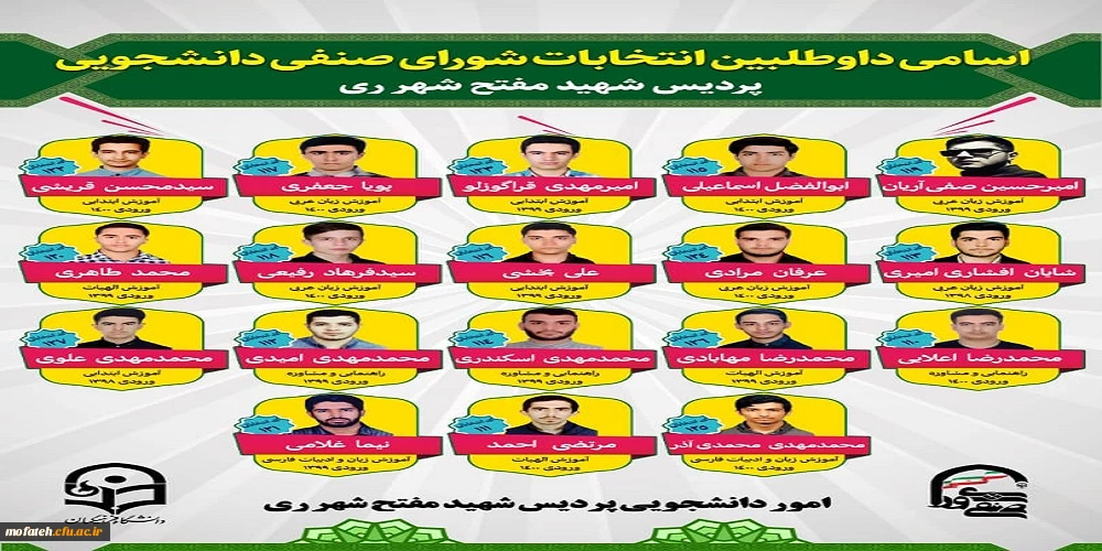 امتیاز دهید : اسامی و مشخصات دانشجو معلمان کاندید شورای صنفی دانشگاه فرهنگیان پردیس شهید مفتح سهشنبه 27 اردیبهشت 1401 ساعت 23:07