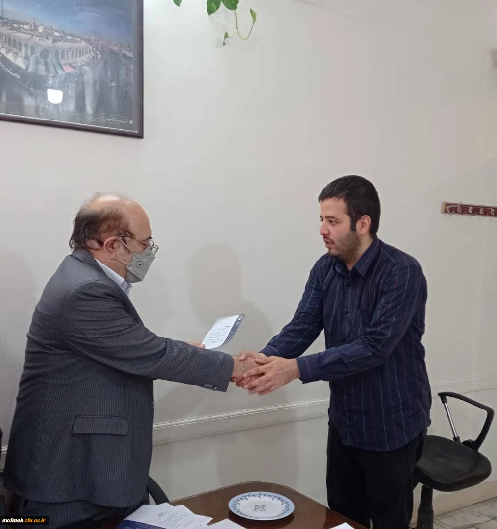 اهدای ابلاغ رسمی اعضای منتخب شورای صنفی پردیس شهید مفتح با حضور مدیریت محترم پردیس های استان تهران جناب آقای دکتر بلاغی و سرپرست و معاون محترم پردیس آقایان دکتر پاک سرشت و دکتر کلانتر و کارشناس مسئول امور دانشجویی آقای کارخانه . 2
