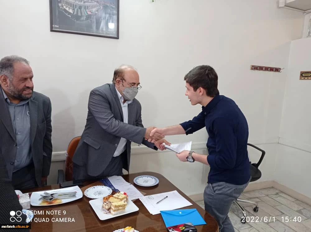 اهدای ابلاغ رسمی اعضای منتخب شورای صنفی پردیس شهید مفتح با حضور مدیریت محترم پردیس های استان تهران جناب آقای دکتر بلاغی و سرپرست و معاون محترم پردیس آقایان دکتر پاک سرشت و دکتر کلانتر و کارشناس مسئول امور دانشجویی آقای کارخانه . 5