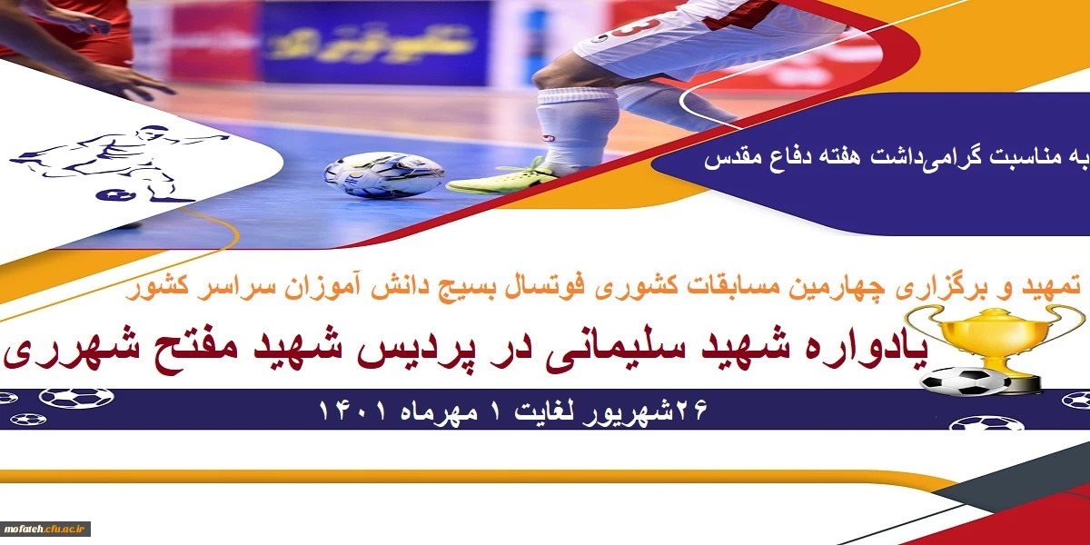 تمهید و برگزاری چهارمین مسابقات کشوری فوتسال بسیج دانش آموزان سراسر کشور، یادواره شهید سلیمانی در پردیس شهید مفتح شهرری