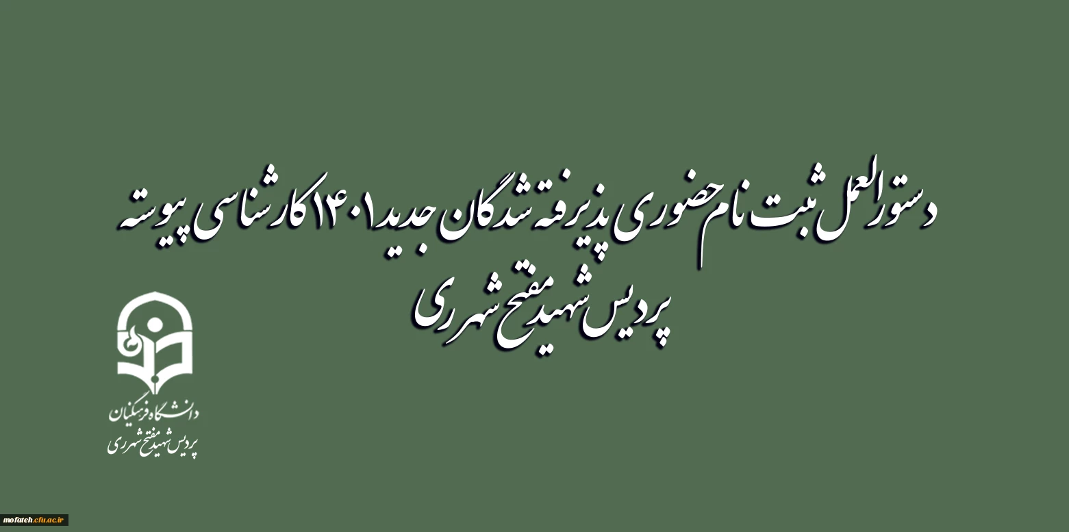 امتیاز دهید : دستورالعمل ثبت نام حضوری پذیرفته شدگان جدید 1401 کارشناسی پیوسته پردیس شهید مفتح شهر ری پنجشنبه 7 مهر 1401 ساعت 22:42