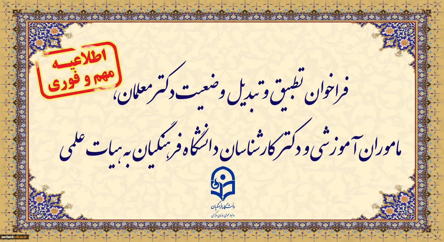 فراخوان تطبیق و تبدیل وضعیت دکترمعلمان، ماموران آموزشی و دکترکارشناسان دانشگاه فرهنگیان به هیات علمی 2