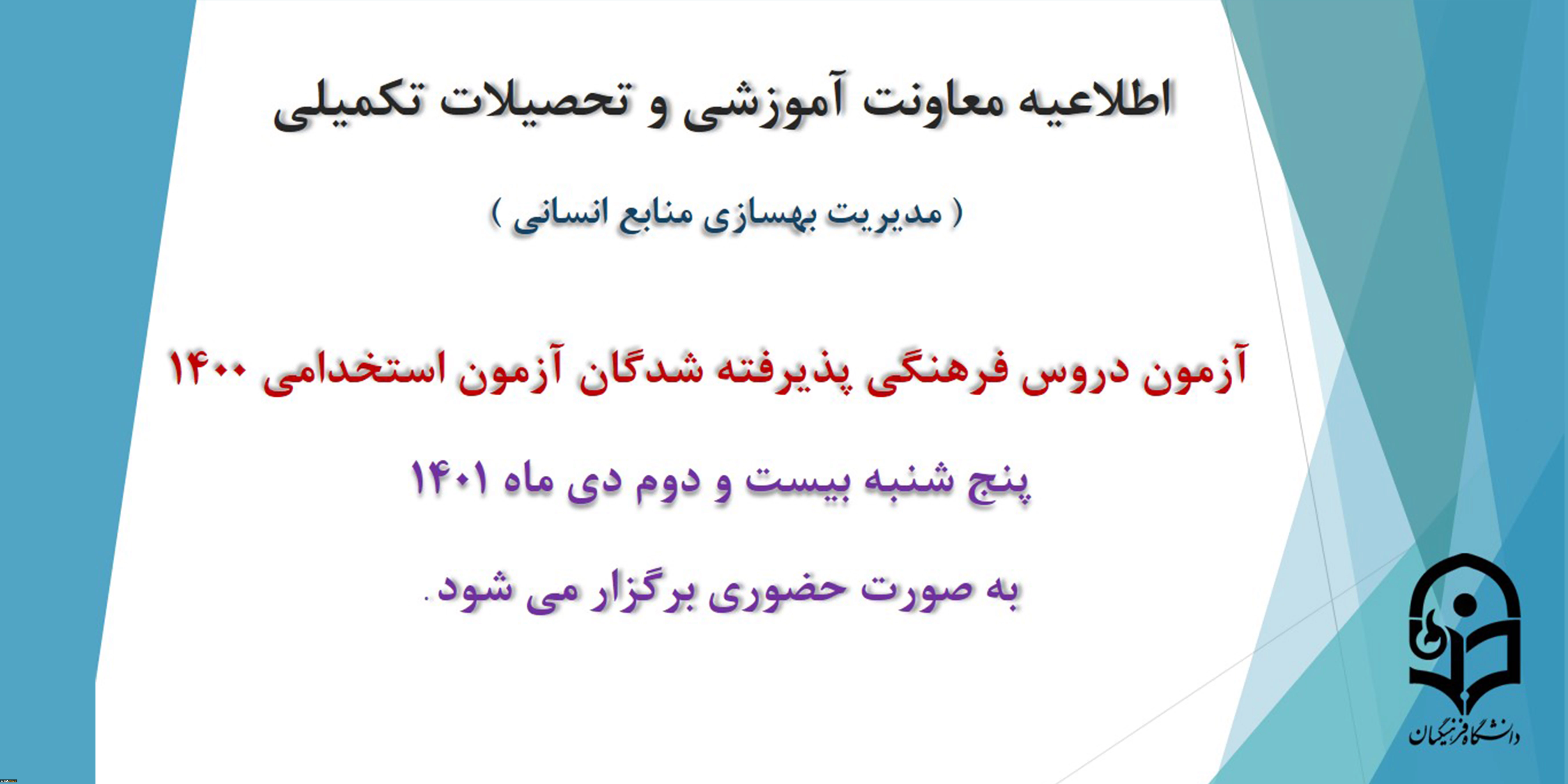 برگزاری آزمون دروس فرهنگی پذیرفته شدگان آزمون استخدامی سال 1400 2