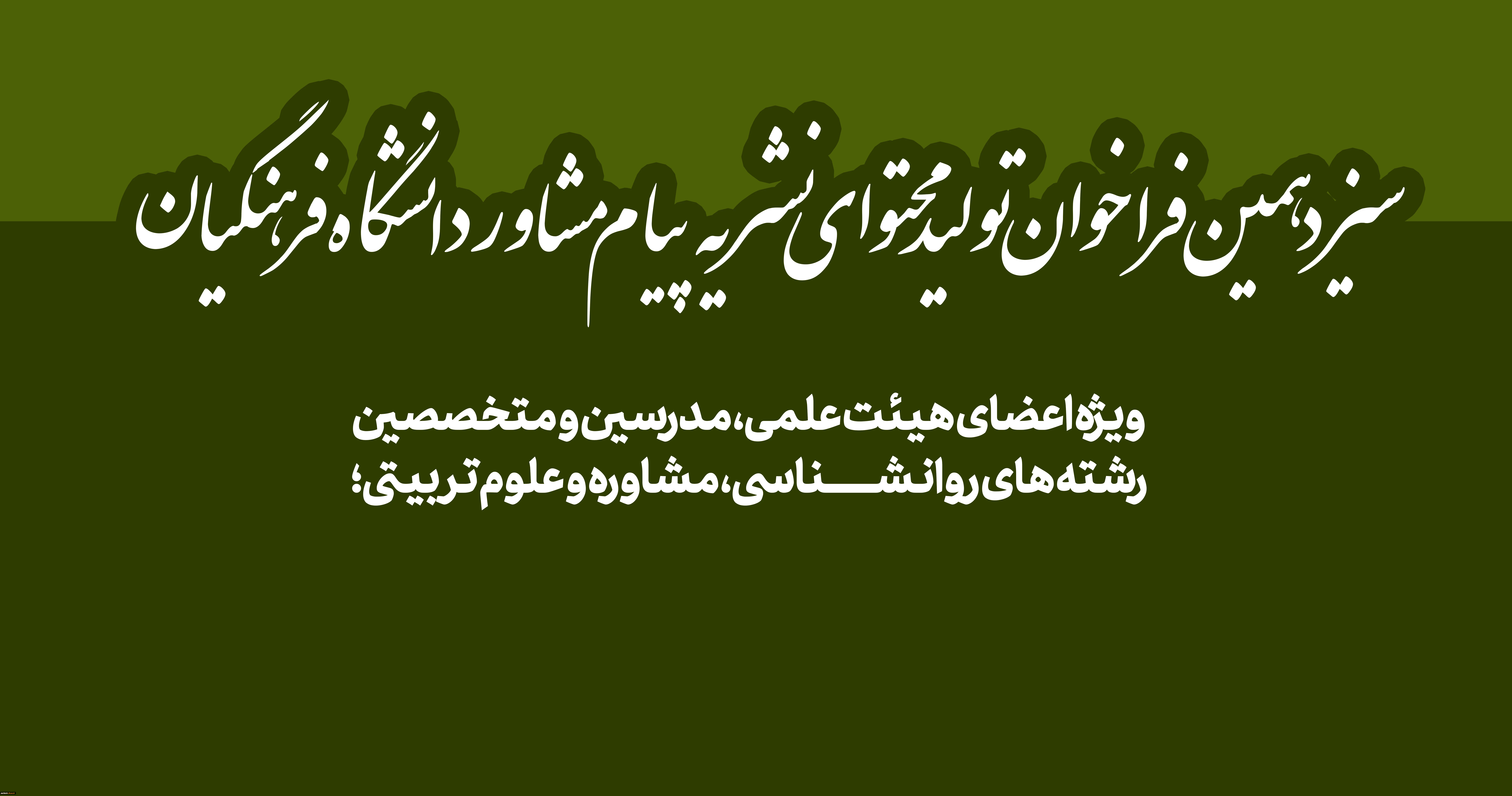 امتیاز دهید : سیزدهمین فراخوان تولید محتوای نشریه پیام مشاور دانشگاه فرهنگیان 2 چهارشنبه 14 دی 1401 ساعت 21:24
