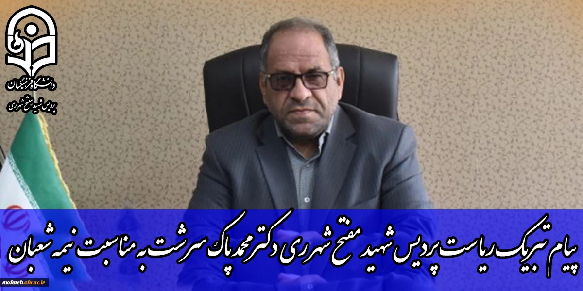 امتیاز دهید : پیام تبریک ریاست پردیس شهید مفتح شهر ری دکتر محمد پاک سرشت به مناسبت نیمه شعبان چهارشنبه 17 اسفند 1401 ساعت 10:38