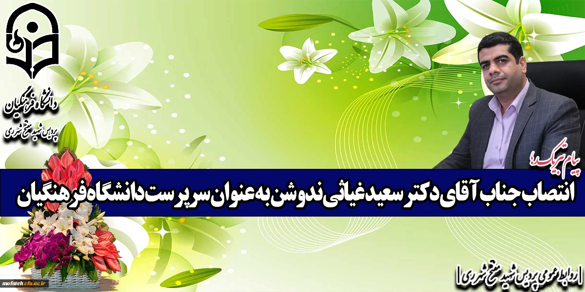 امتیاز دهید : انتصاب جناب آقای دکتر سعید غیاثی ندوشن به عنوان سرپرست دانشگاه فرهنگیان یکشنبه 21 خرداد 1402 ساعت 8:00