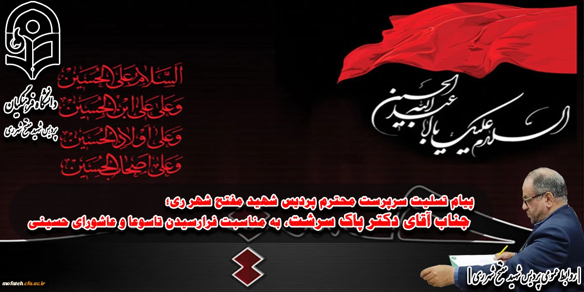 پیام تسلیت سرپرست محترم پردیس شهید مفتح شهر ری؛ جناب آقای دکتر پاک سرشت، به مناسبت فرارسیدن تاسوعا و عاشورای حسینی