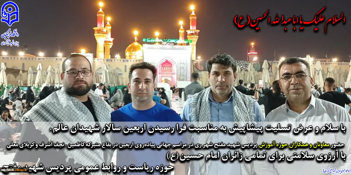 حضور معاونان و همکاران حوزه آموزش پردیس شهید مفتح شهر ری در مراسم جهانی پیاده روی اربعین در بقاع متبرکه کاظمین، نجف اشرف و کربلای معلی