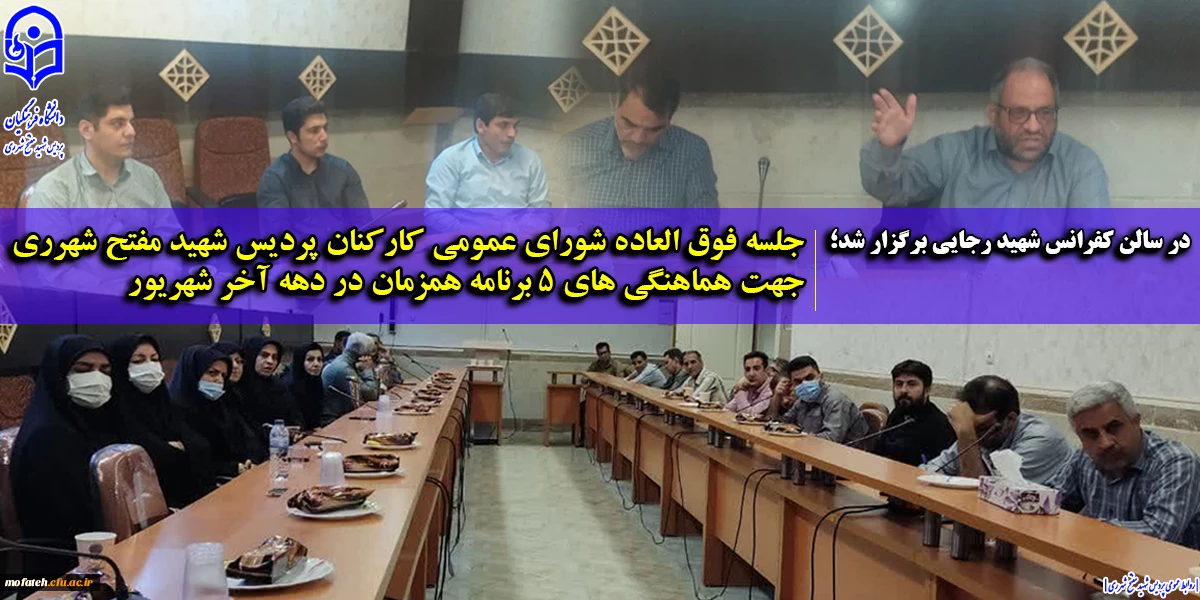 تشکیل جلسه فوق العاده شورای عمومی کارکنان پردیس شهید مفتح شهرری جهت هماهنگی های ۵ برنامه همزمان در دهه آخر شهریور