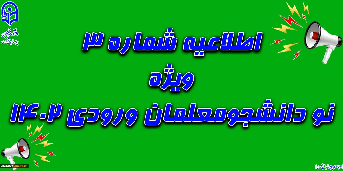 اطلاعیه شماره 3 ویژه نو دانشجومعلمان ورودی 1402