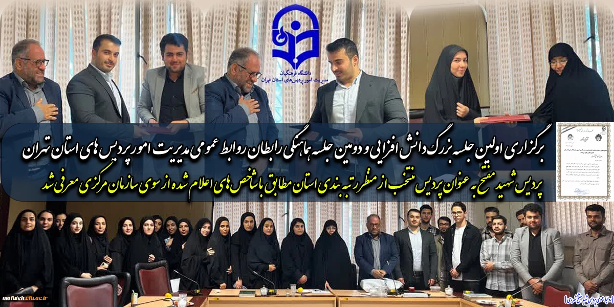 برگزاری اولین جلسه بزرگ دانش افزایی و دومین جلسه هماهنگی رابطان روابط عمومی مدیریت امور پردیس های استان تهران