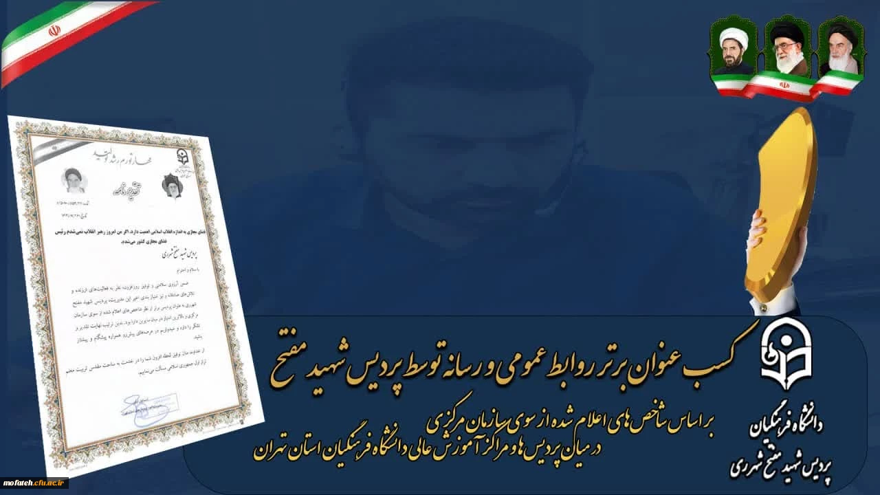کسب عنوان برتر روابط عمومی و رسانه توسط پردیس شهید مفتح