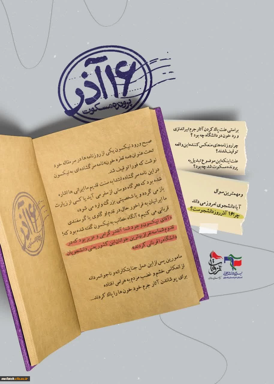 امتیاز دهید : چرا ۱۶ آذر، روز دانشجو است؟ نگاهی تحلیلی به وقایع ۱۶ آذر ۱۳۳۲ 2 شنبه 18 آذر 1402 ساعت 22:21