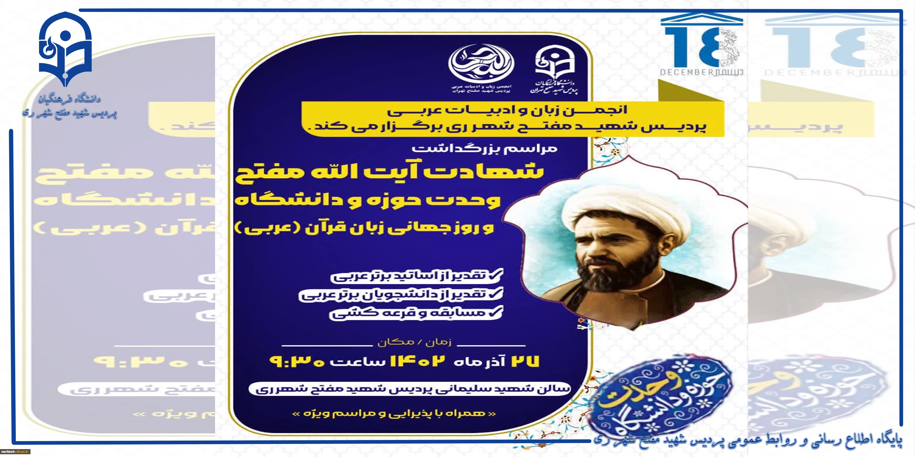امتیاز دهید : بزرگداشت شهادت آیت الله مفتح و روز وحدت حوزه و دانشگاه و روز جهانی زبان قرآن(عربی) چهارشنبه 22 آذر 1402 ساعت 22:17
