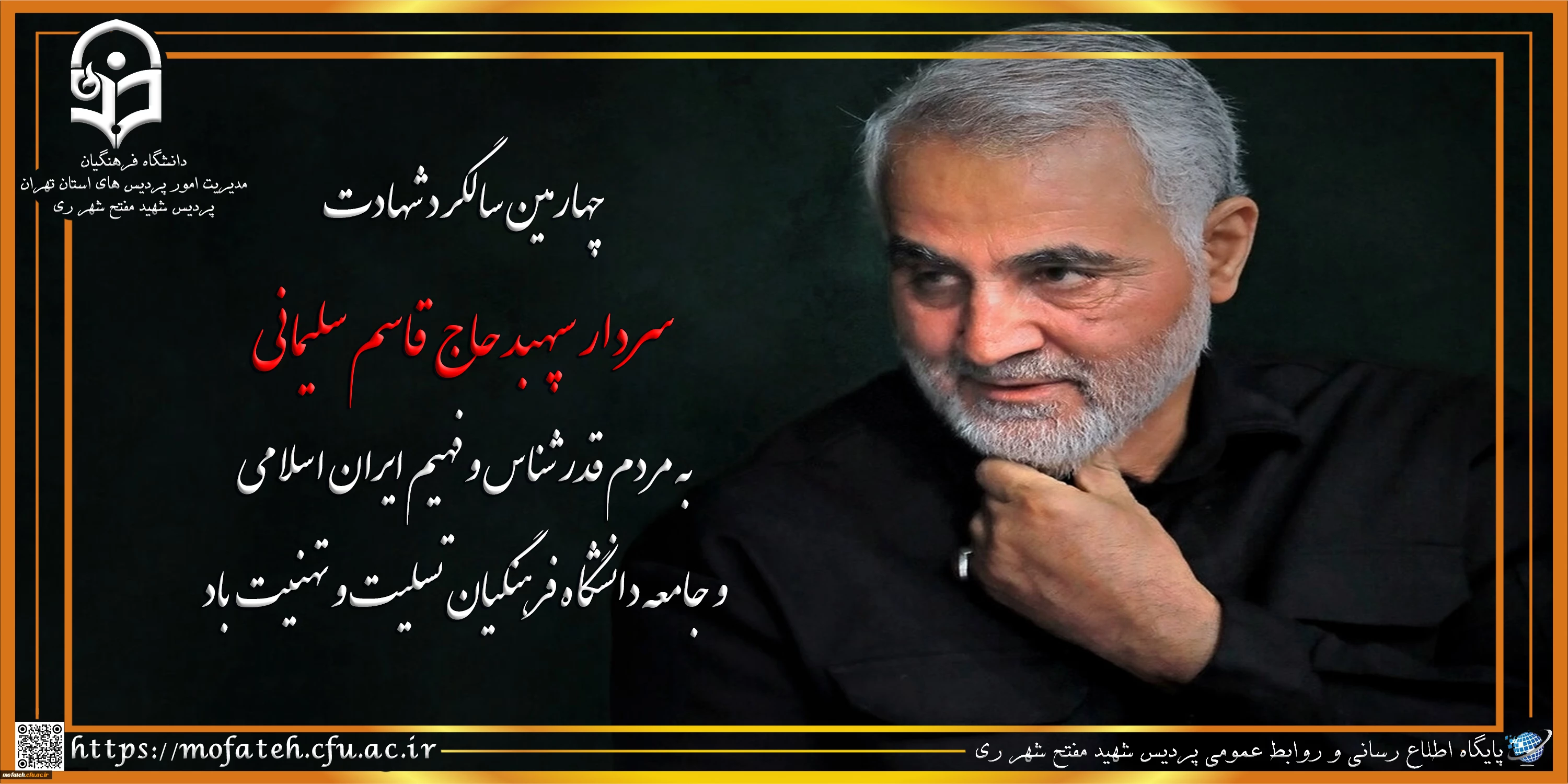 چهارمین سالگرد شهادت سردار سپهبد حاج قاسم سلیمانی به مردم قدرشناس و فهیم ایران اسلامی و جامعه دانشگاه فرهنگیان تسلیت و تهنیت باد.