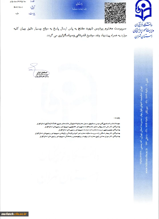 امتیاز دهید : ریاست محترم پردیس شهید مفتح شهر ری از کارشناس مسئولان پردیس 3 دوشنبه 2 بهمن 1402 ساعت 10:34