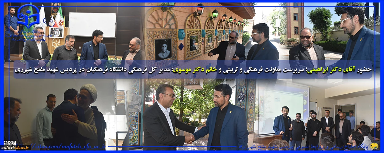 حضور آقای دکتر ابراهیمی؛ سرپرست معاونت فرهنگی و تربیتی و خانم دکتر موسوی؛ مدیر کل فرهنگی دانشگاه فرهنگیان در پردیس شهید مفتح و بازدید از بخش های مختلف این پردیس