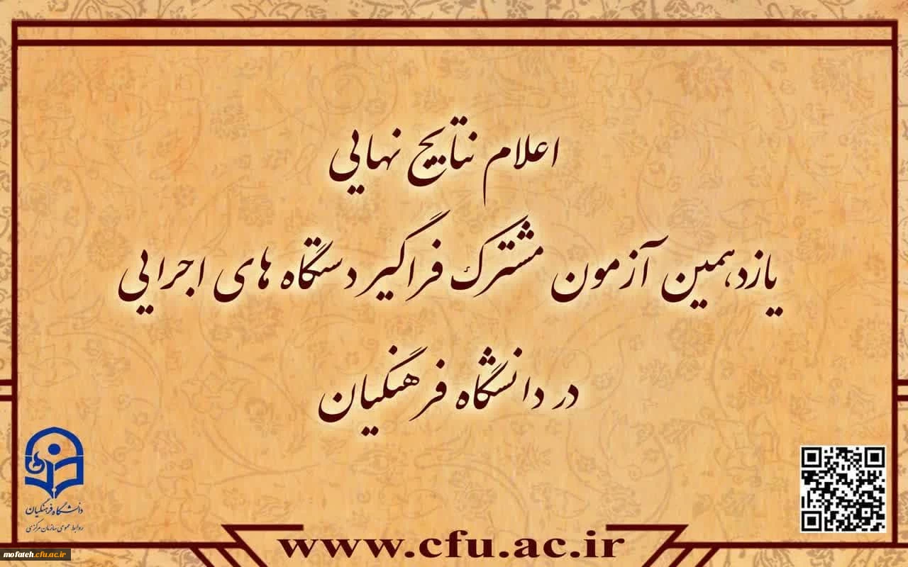 اعلام نتایج نهایی آزمون استخدامی دانشگاه فرهنگیان در یازدهمین امتحان مشترک فراگیر دستگاه های اجرایی کشور