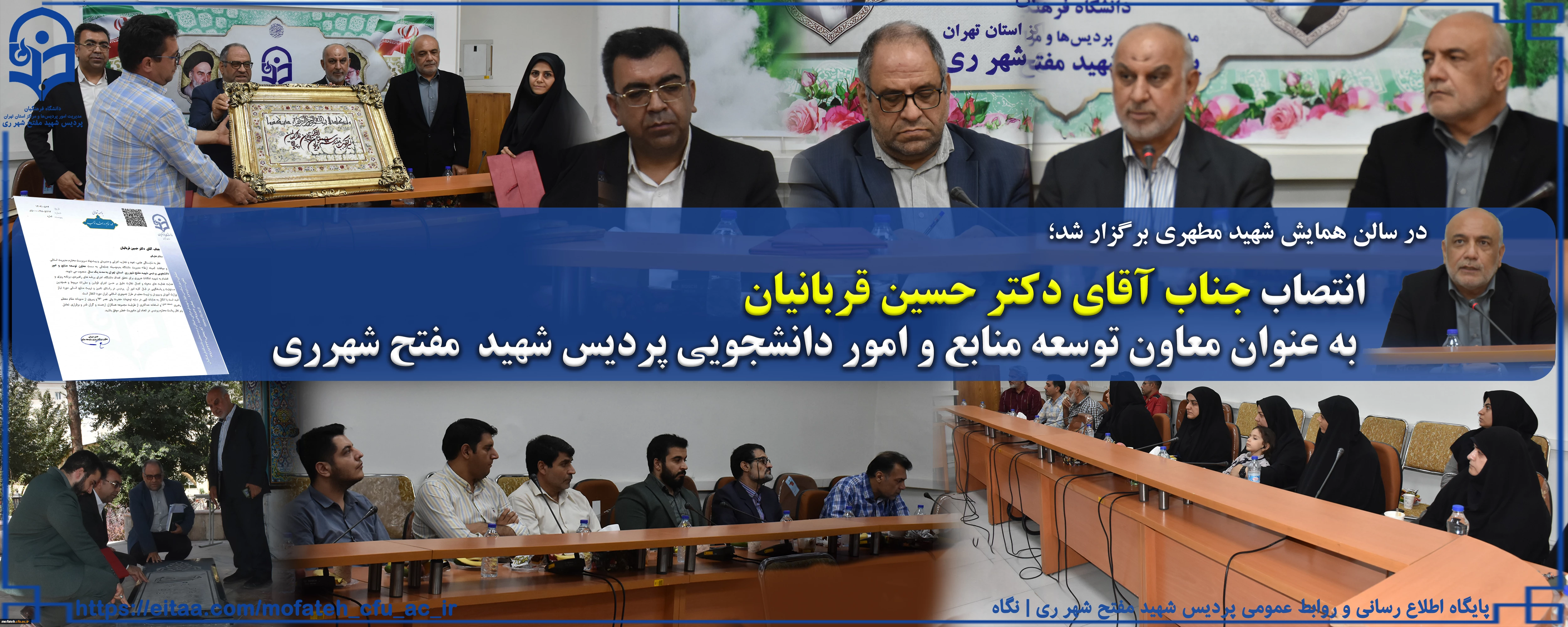 انتصاب جناب آقای دکتر حسین قربانیان به عنوان معاون توسعه منابع و امور دانشجویی پردیس شهید مفتح شهرری