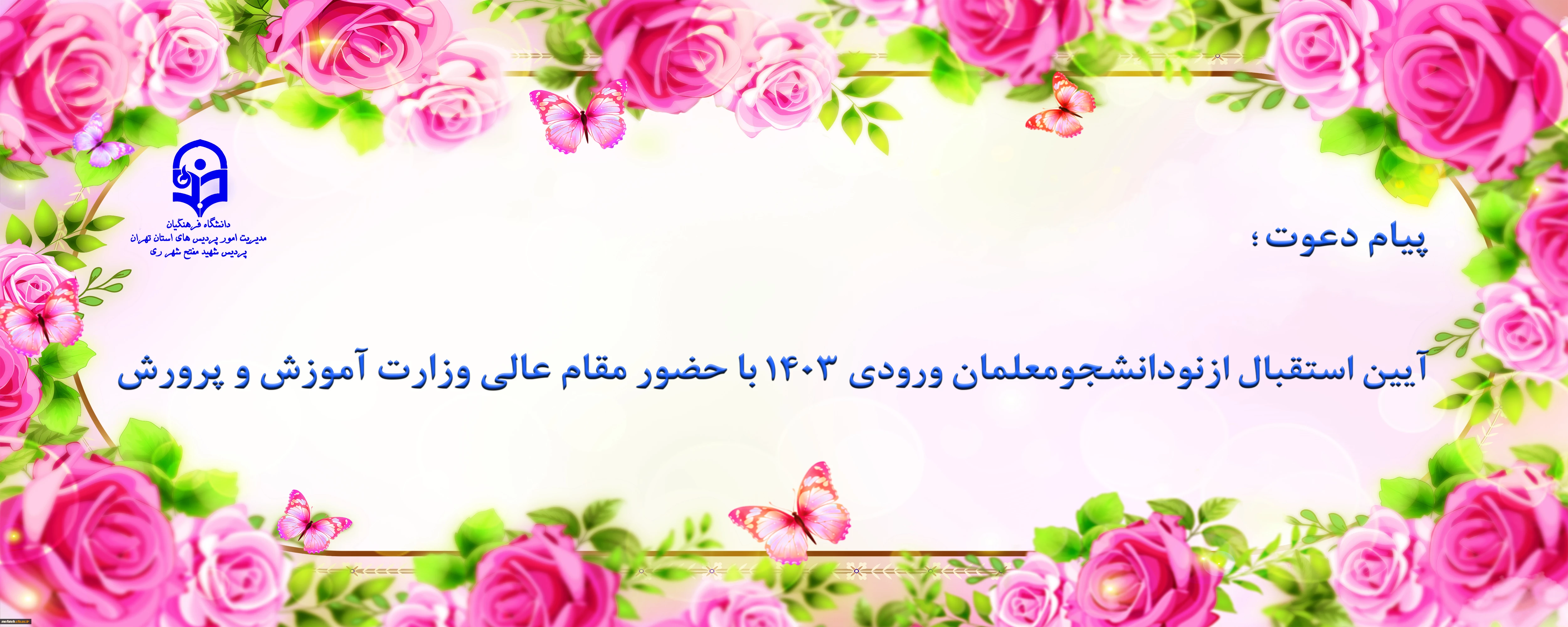 امتیاز دهید : آیین استقبال ازنودانشجومعلمان ورودی 1403 با حضور مقام عالی وزارت آموزش و پرورش چهارشنبه 11 مهر 1403 ساعت 15:28