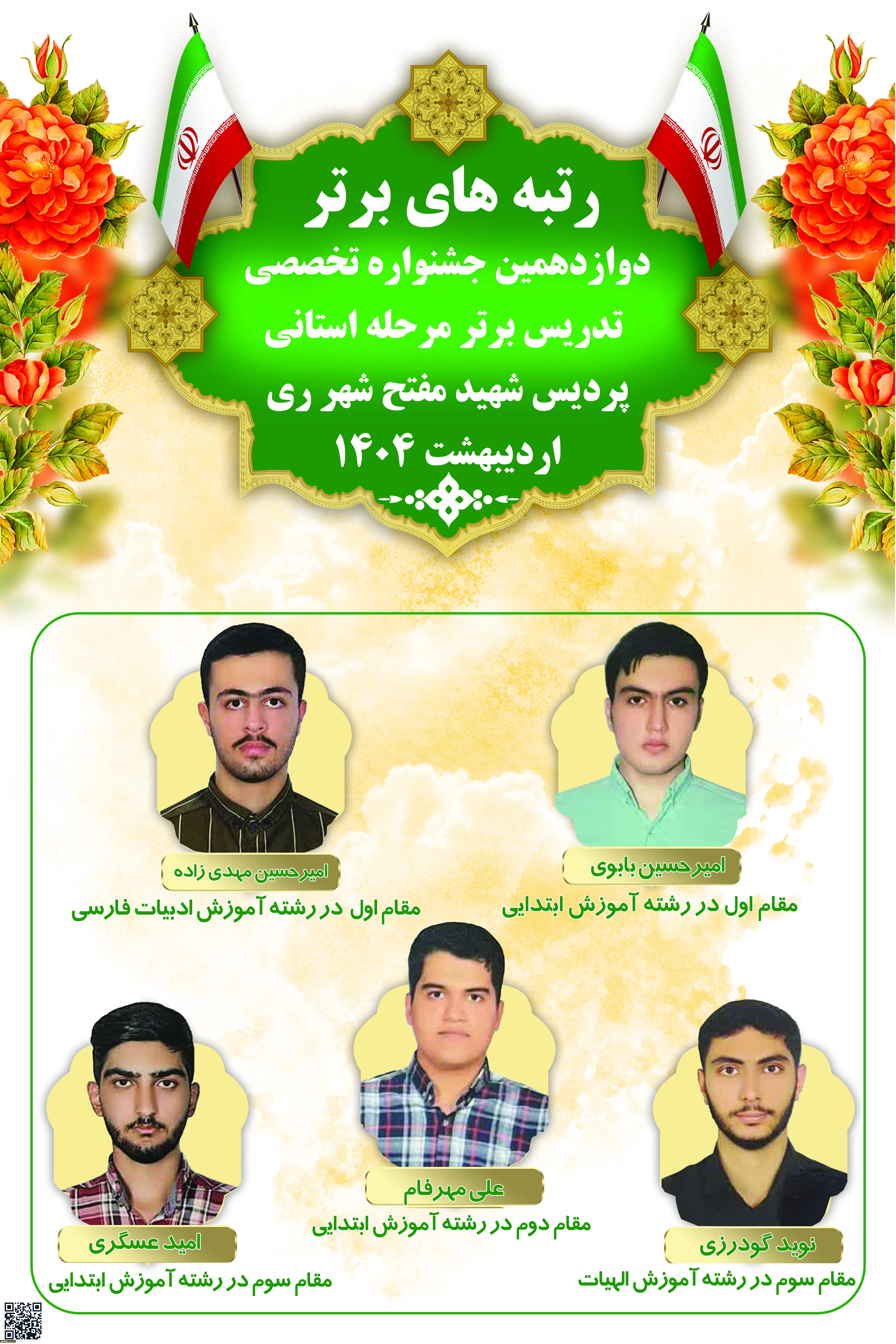 امتیاز دهید : رتبه های برتر دوازدهمین جشنواره تخصصی تدریس برتر مرحله استانی پردیس شهید مفتح شهر ری 2 سهشنبه 9 اردیبهشت 1404 ساعت 11:00