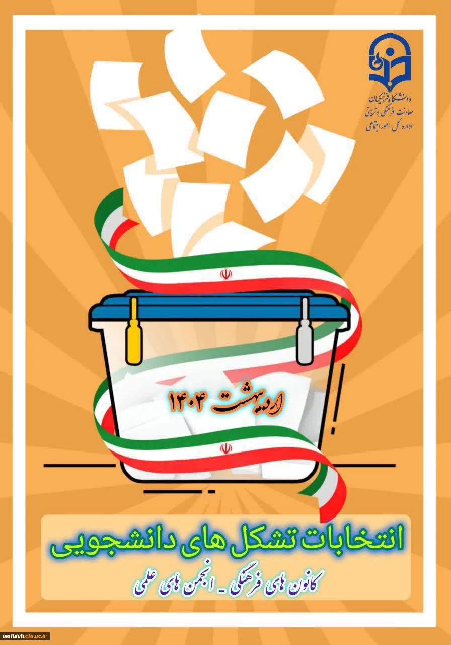 امتیاز دهید : تقویم برگزاری انتخابات انجمن های علمی و کانون های فرهنگی پردیس شهید مفتح شهر ری یکشنبه 14 اردیبهشت 1404 ساعت 11:45