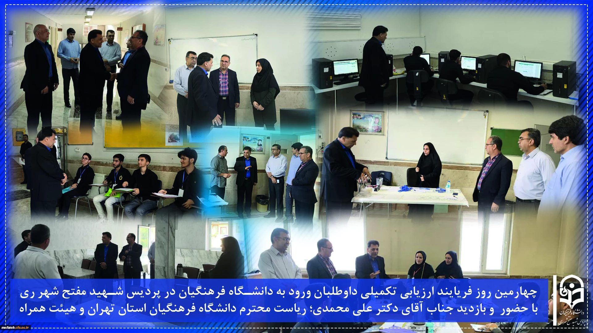 چهارمین روز فریایند ارزیابی تکمیلی داوطلبان ورود به دانشگاه فرهنگیان در پردیس شهید مفتح شهر ری با حضور و بازدید جناب آقای دکتر علی محمدی؛ ریاست محترم دانشگاه فرهنگیان استان تهران و هیئت همراه 2